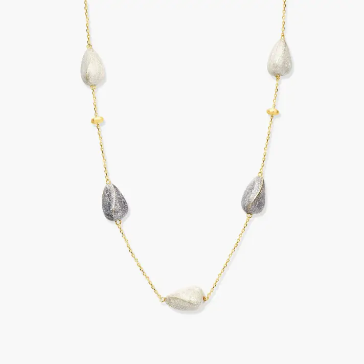 שרשרת זהב 14K המעוצבת עם טיפות זהב עטופות בציפוי קריסטלי נוצץ בגווני כסף. אורך השרשרת 43 ס"מ