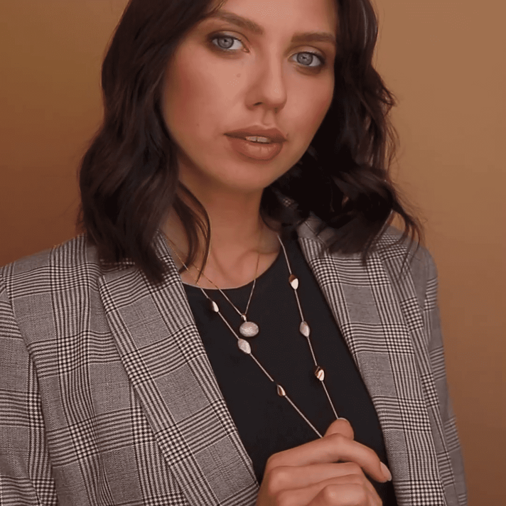 שרשרת זהב ארוכה עם אבני זהב בגימור מבריק ובציפוי קריסטלים