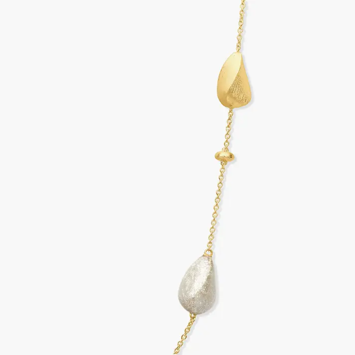 שרשרת זהב 14K המעוצבת עם אבני זהב בגימור מט מוברש וציפוי של קריסטלים נוצצים לאבן זהב אחת. אורך השרשרת 43 ס"מ, גודל אבני הזהב 1.4*0.7 ס"מ.