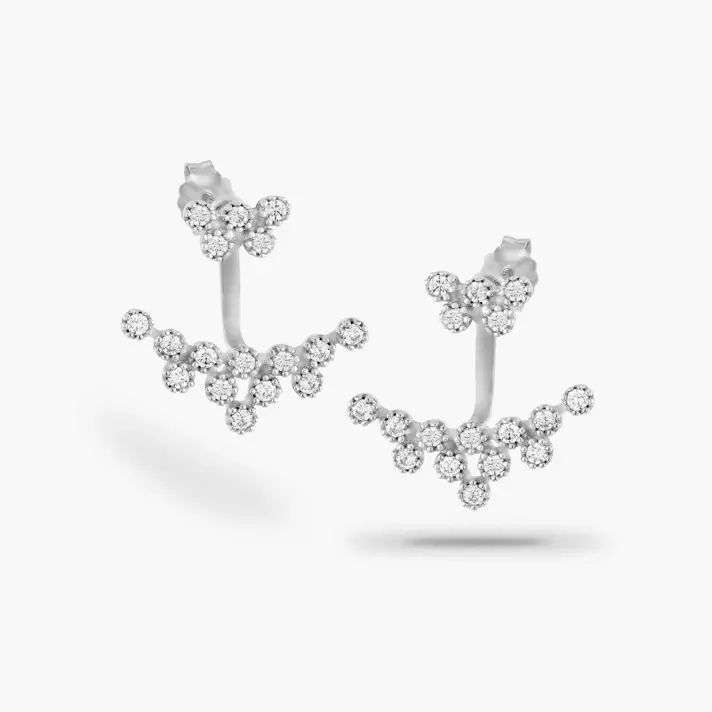 עגילי זהב 14K המשובצים בזירקונים נוצצים. אורך העגיל 2 ס"מ, רוחב - 0.8 ס"מ וגם 2 ס"מ