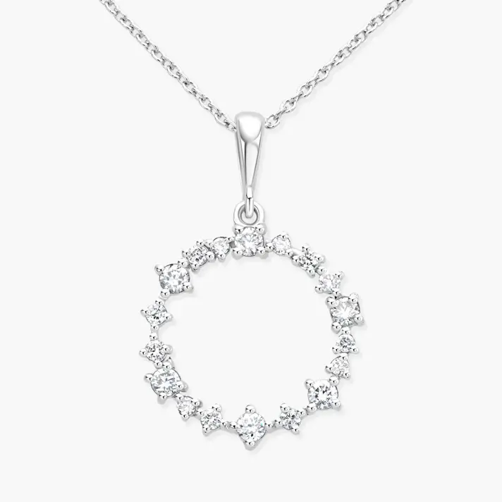 תליון זהב 14K עגול משובץ 18 יהלומים טבעיים ונוצצים במשקל 0.27 קראט . קוטר התליון ס"מ אחד.