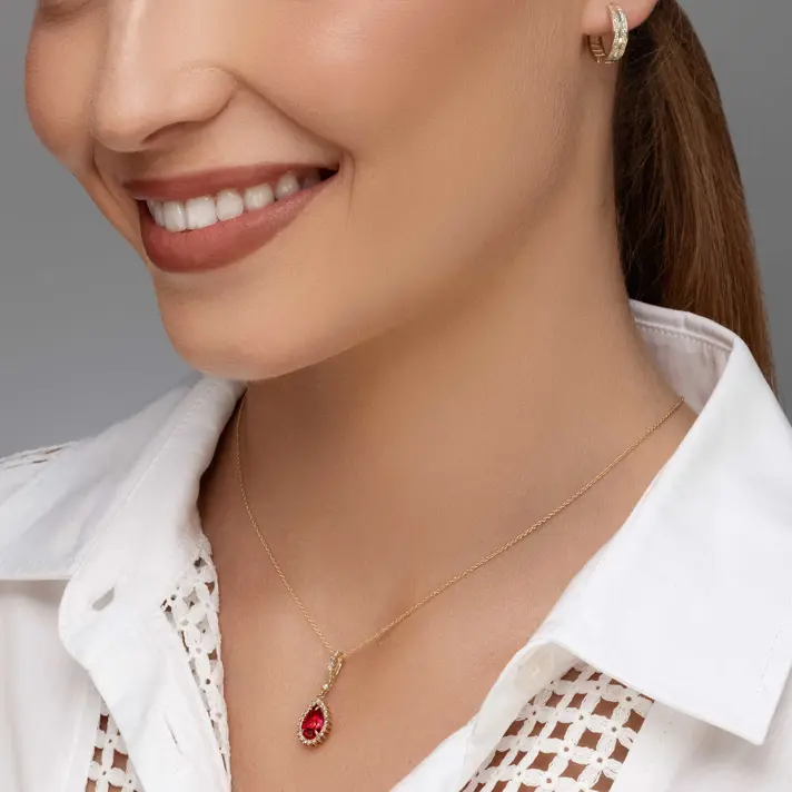 תליון זהב משובץ אבן Ruby-Glass מוקפת יהלומים