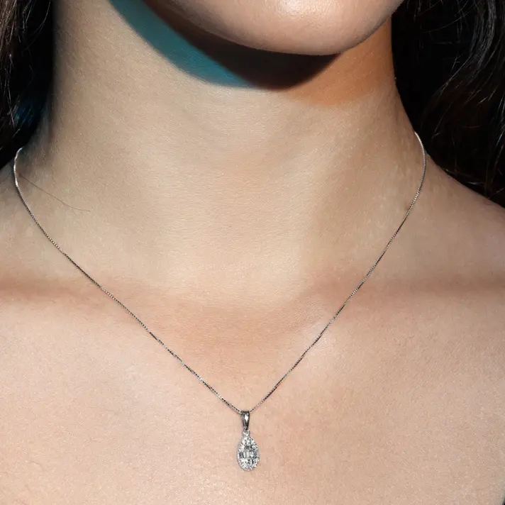 תליון יהלום טיפה משובץ יהלומים טבעיים