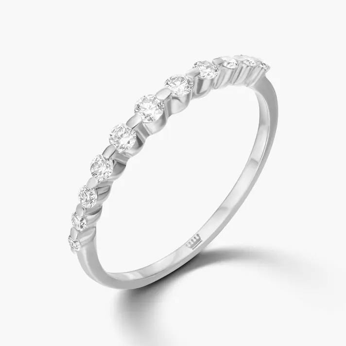 טבעת זהב 14 קראט משובצת ב 11 יהלומים טבעיים ונוצצים במשקל 0.39 קראט. רוחב הטבעת 0.15 ס"מ