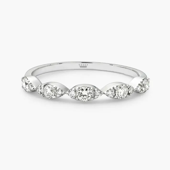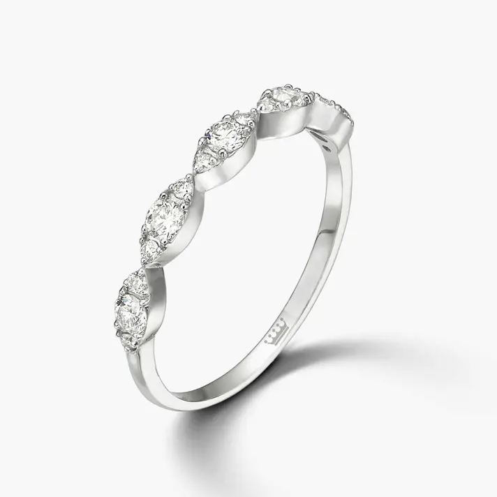 טבעת זהב 14K לבן משובצת ב 5 מקבצים ב 15 יהלומים טבעיים ונוצצים. רוחב הטבעת בחלקה העליון 2 מ"מ