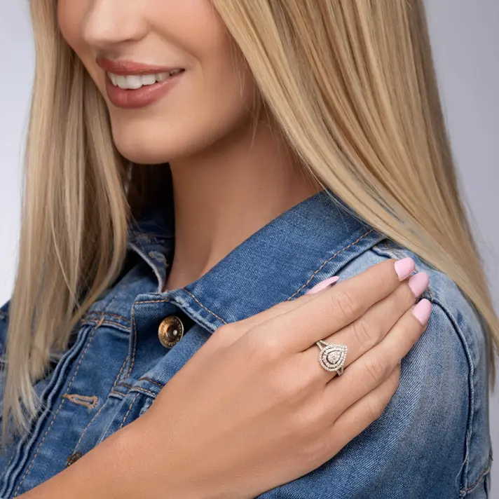 טבעת זהב בעיצוב טיפה משובצת יהלומים