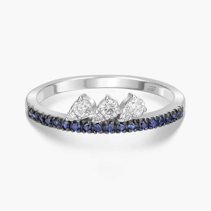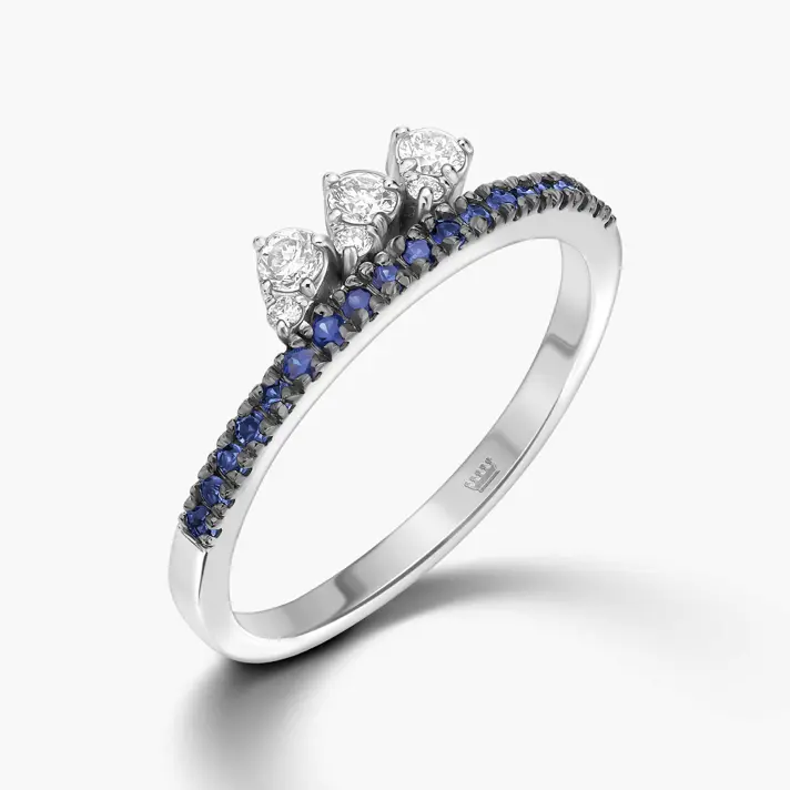 טבעת זהב משובצת אבני ספיר ויהלומים