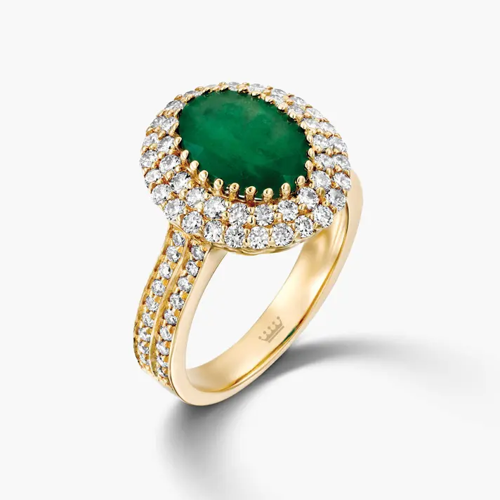 טבעת זהב משובצת באבן אמרלד ויהלומים