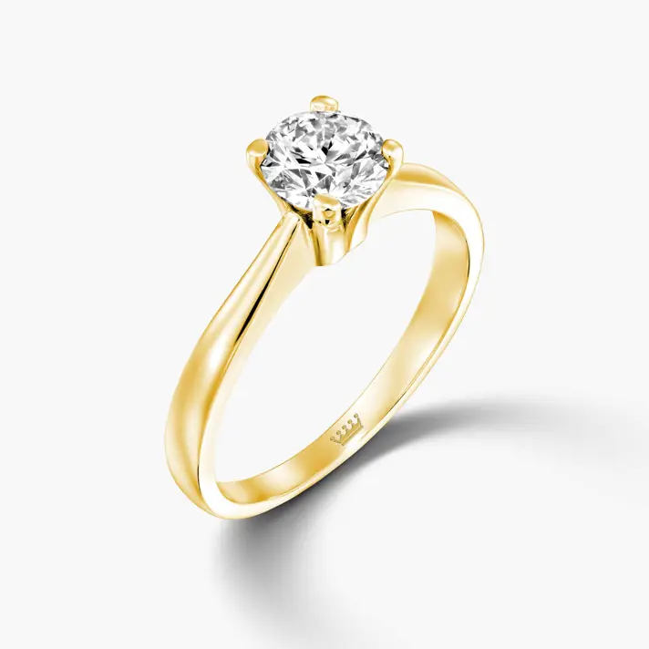 טבעת זהב 14K מתאימה במיוחד להצעות נישואין , משובצת ביהלום טבעי ונוצץ במשקל של החל מ 0.40 קראט, ומוחזק באמצעות 4 שיני זהב.רוחב הטבעת 2 מ"מ, גובה האבן המרכזית 7 מ"מ