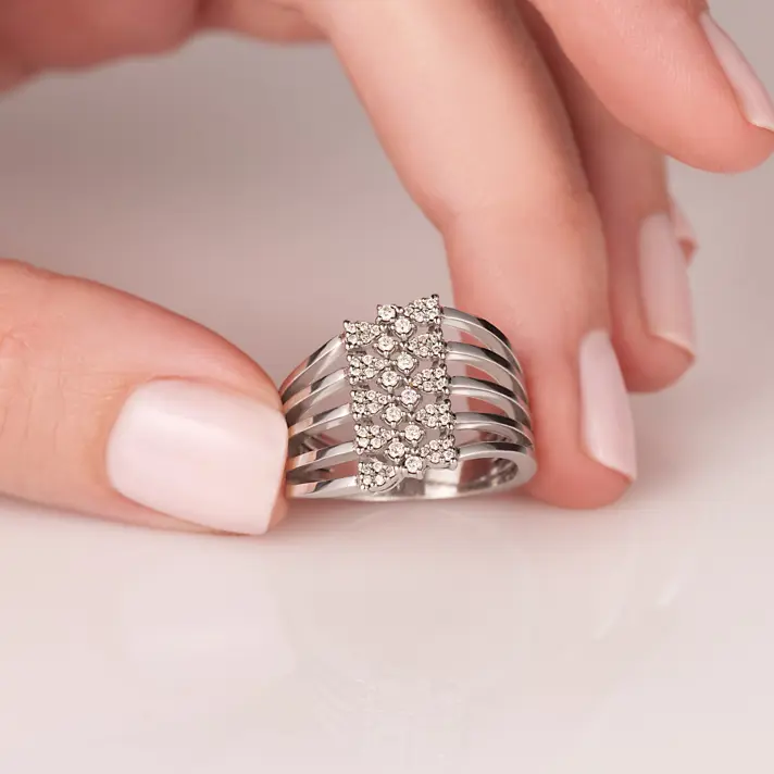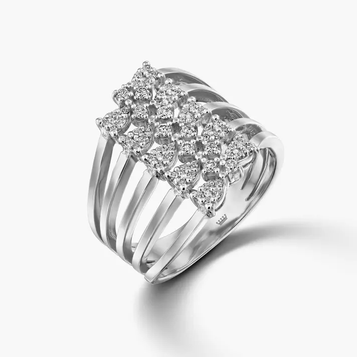 טבעת 10 החיצים בזהב לבן משובצת יהלומים
