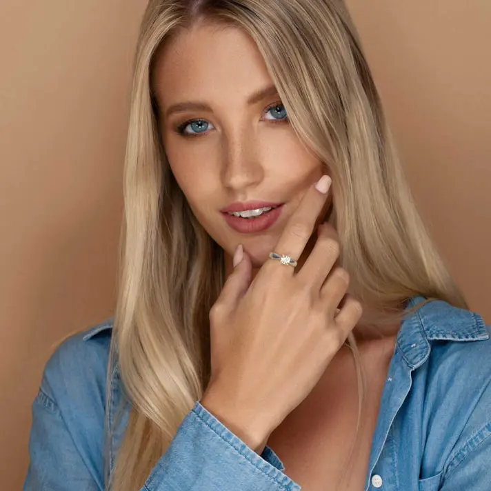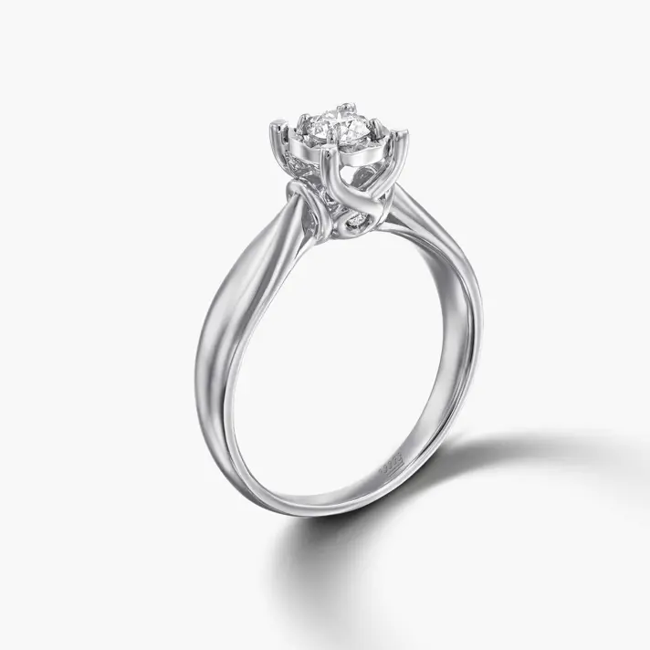 טבעת זהב 14K לבן משובצת ביהלום מרכזי טבעי ונוצץ.לצפיה בנתוני היהלום יש ללחוץ על נתוני אבני החן. רוחב מקסימלי הטבעת 3.5 מ"מ, רוחב מינימלי - 1.5 מ"מ. גובה האבן המרכזית 6 מ"מ
