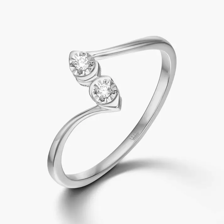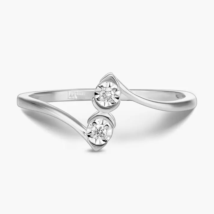 טבעת זהב 14K המתפצלת לשני קצוות המשובצים ב 2 יהלומים טבעיים ונוצצים . גובה הקצוות המשובצים יחד ס"מ אחד.