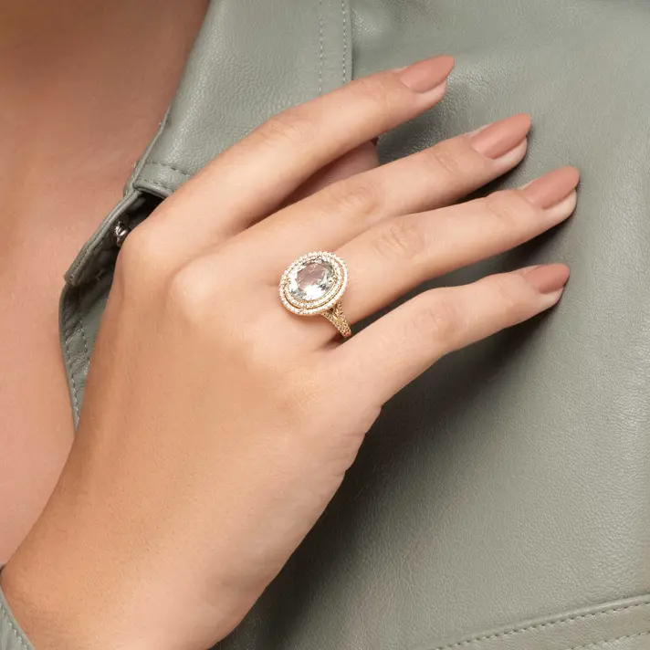 טבעת זהב משובצת אבן גרין אמטיסט ויהלומים