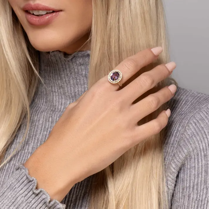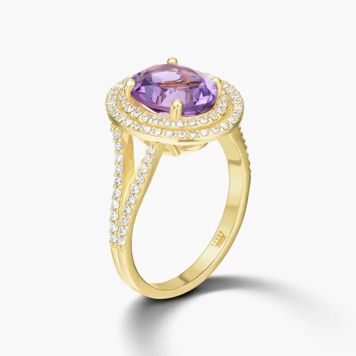 טבעת זהב משובצת יהלומים ואבן אמטיסט