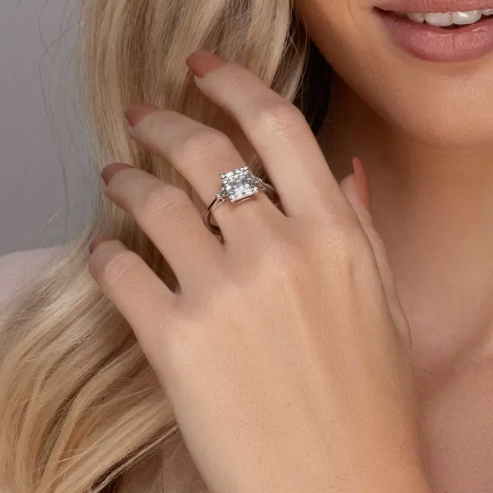 טבעת זהב משובצת יהלומים בחיתוך באגט יוקרתי