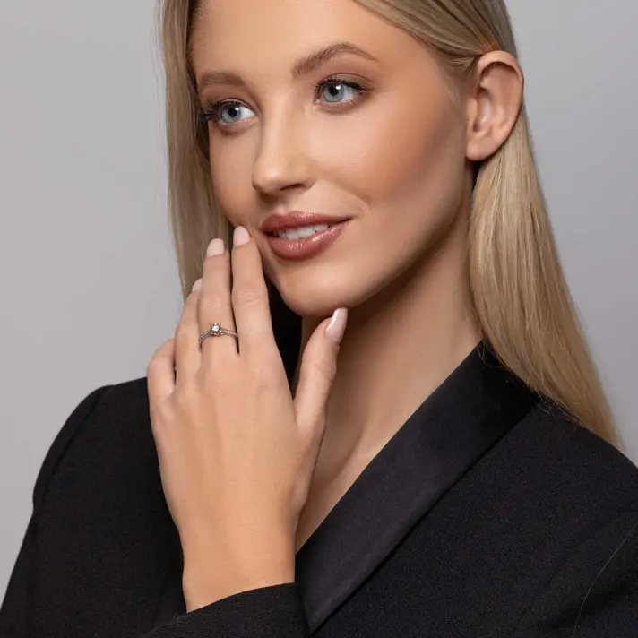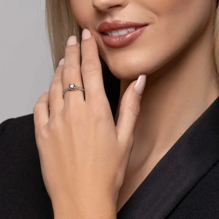 טבעת זהב סוליטר משובץ יהלום מרשים
