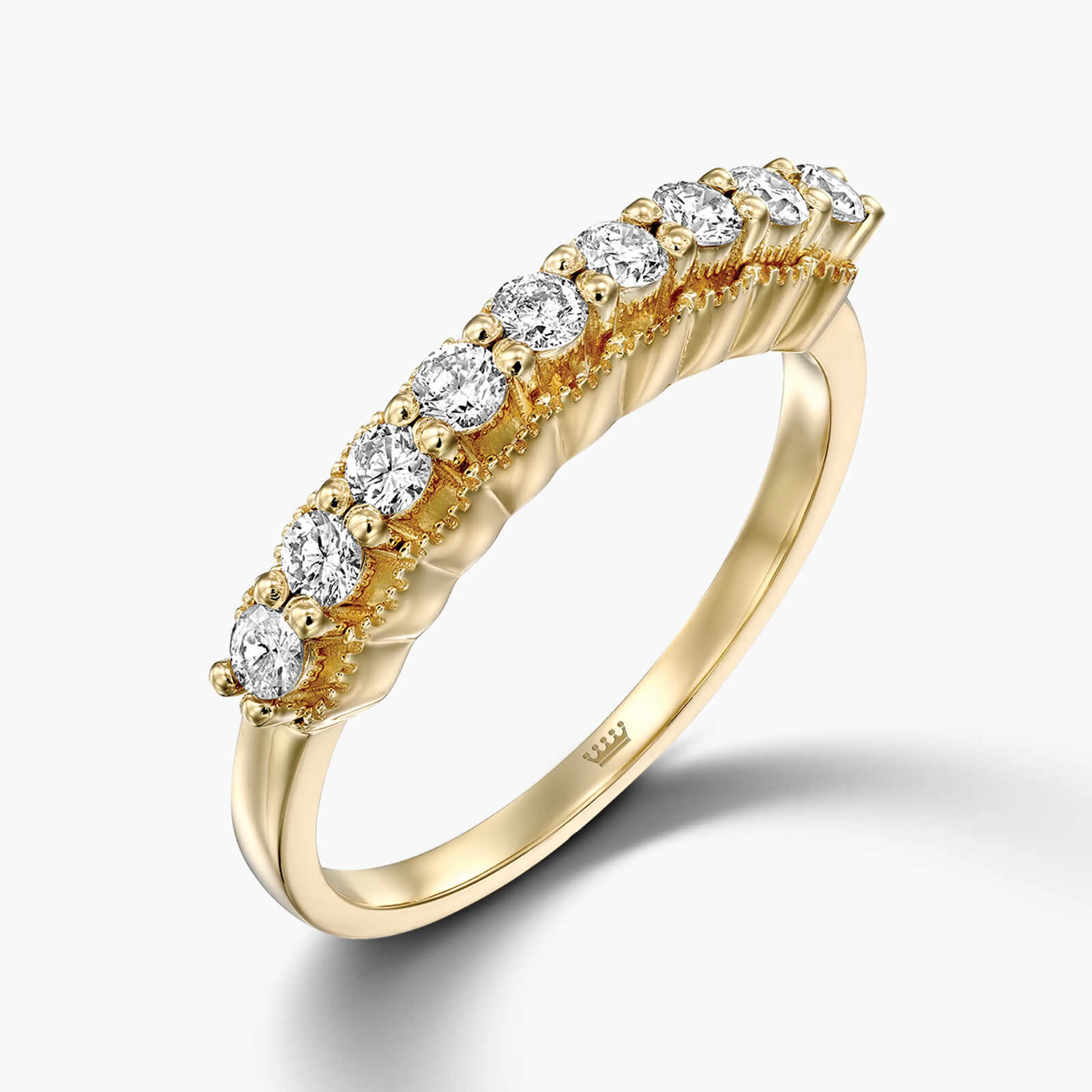 טבעת זהב 14K משובצת 9 יהלומים טבעיים ונוצצים במשקל 0.42 קראט. רוחב הטבעת 0.3 ס"מ