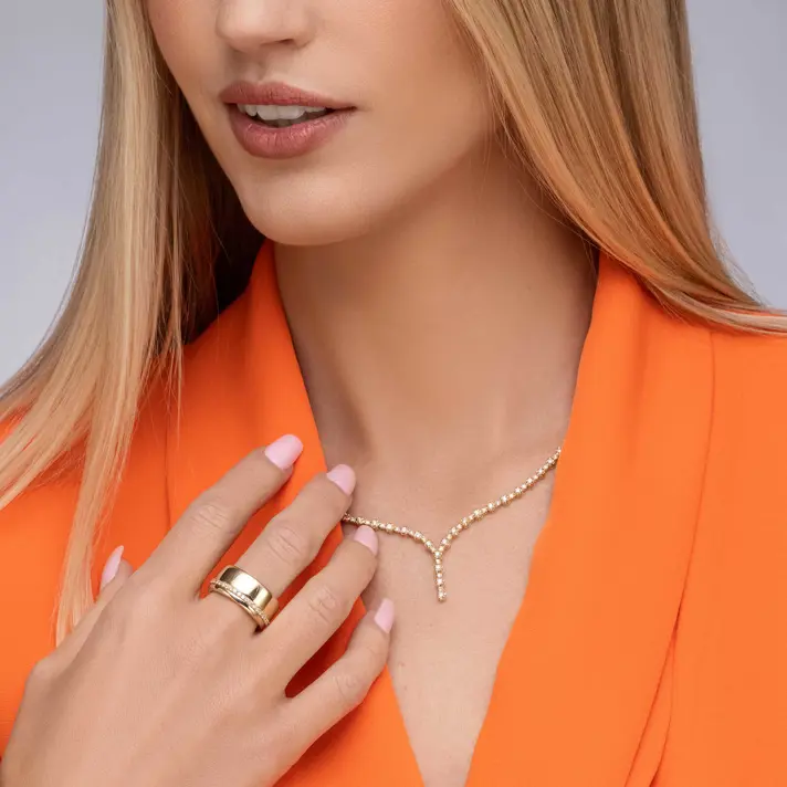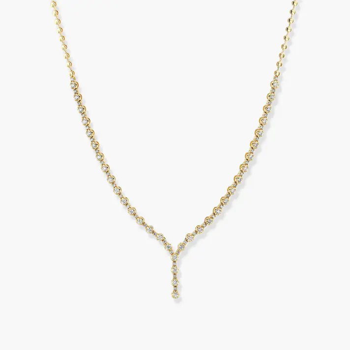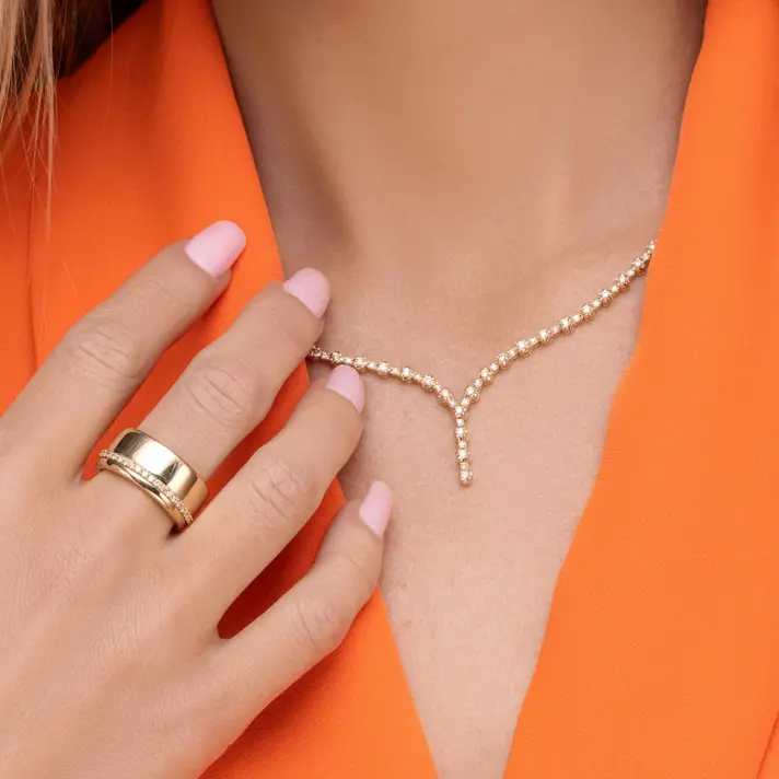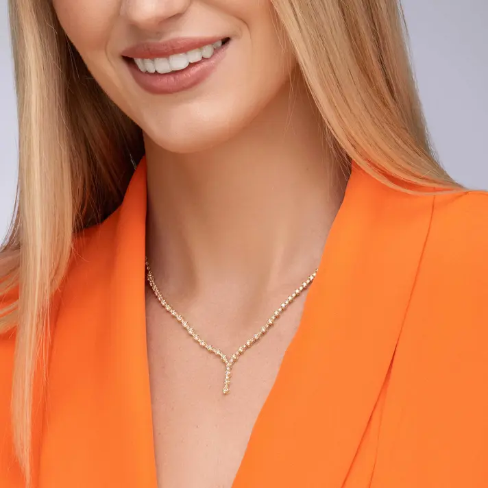 שרשרת זהב 14K משובצת 73 יהלומים טבעיים ונוצצים במשקל קראט יהלומים. אורך השרשרת 47 ס"מ.