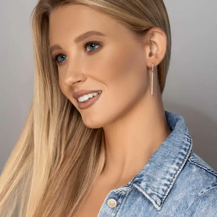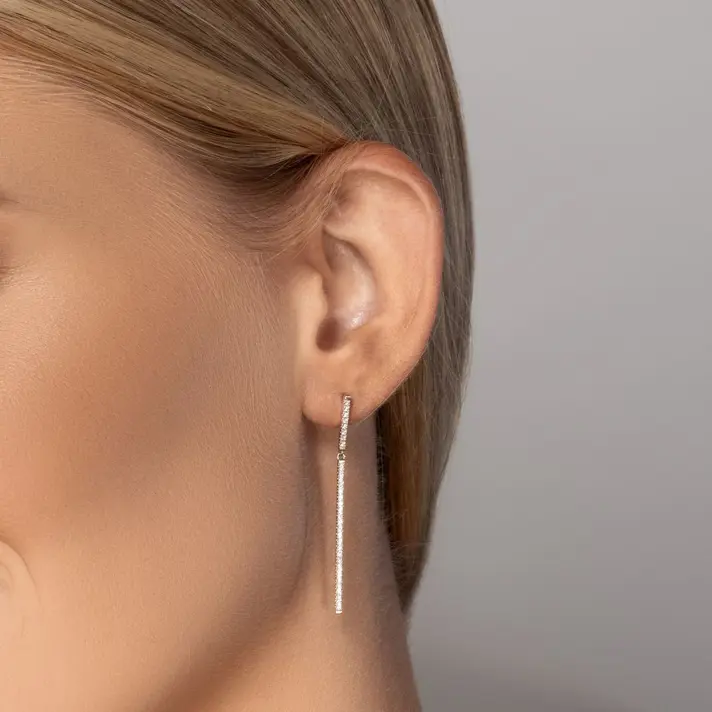 עגילי זהב 14K ארוכים המשובצים 64 יהלומים טבעיים ונוצצים במשקל 0.29 קראט.אורך העגיל 4.7 ס"מ