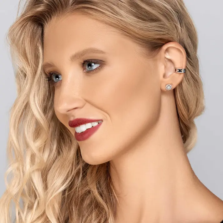 עגילי זהב 14K צמודים לאוזן משובצים ב-42 יהלומים טבעיים ונוצצים במשקל של כרבע קראט. קוטר העגיל 0.7 ס"מ