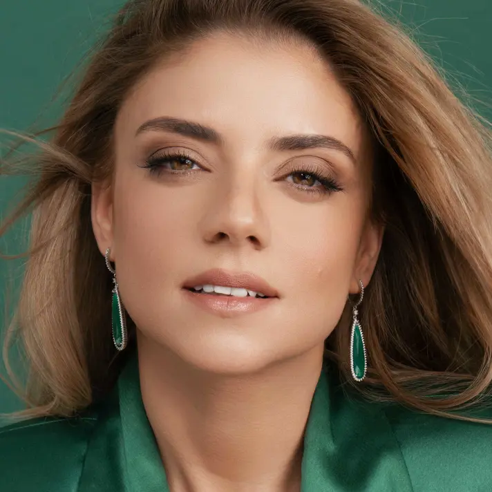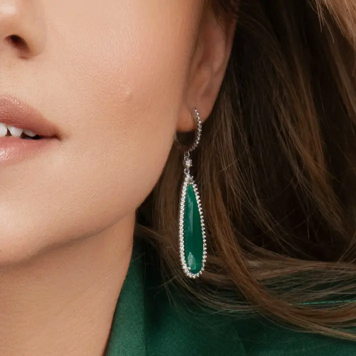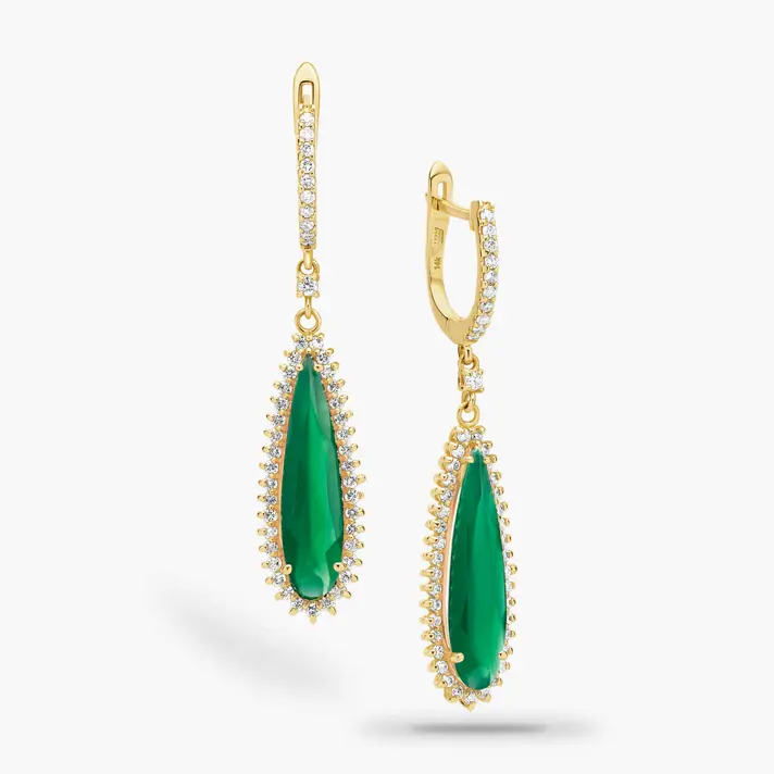 עגילי זהב בשיבוץ אבני אגת ירוקות ויהלומים