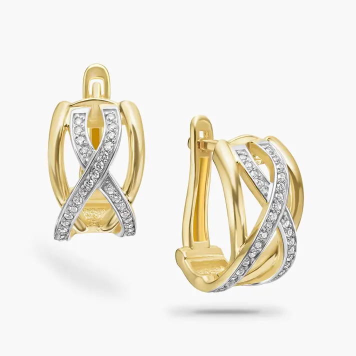 עגילי זהב עם צורת איקס משובץ יהלומים