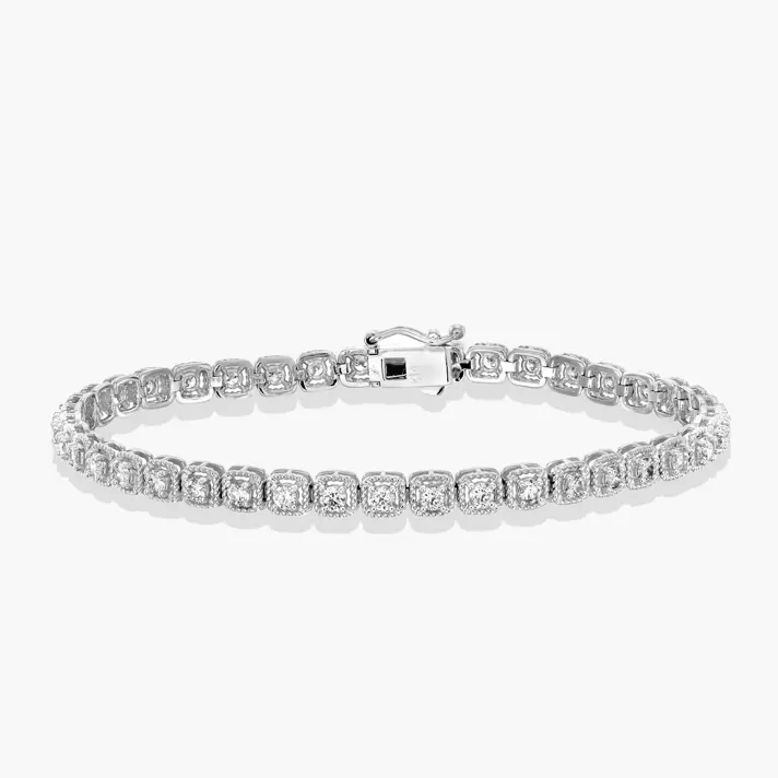 צמיד זהב לבן 14K טניס משובץ ב 41 יהלומים במשקל של מעל קראט (לפירוט מדוייק יש ללחוץ על כפתור נתוני אבני החן) . אורך הצמיד 18 ס"מ, רוחב - 0.4 ס"מ