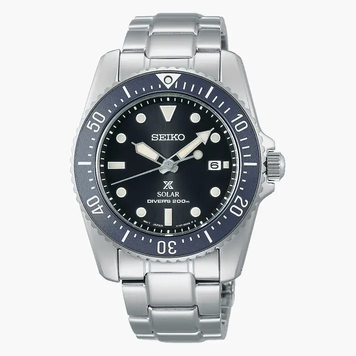 שעון SEIKO PROSPEX צלילה בעל לוח שחור וסקאלה בצבע תכלת. השעון עמיד במים עד לעומק 200 מטר, יש לו מנגנון סולארי V147 המסוגל לייצר אנרגיה מקרני האור לפעול עד ל 10 חודשים לאחר טעינה מלאה. בלוח השעון תאריכון וסימוני הספרות,מחוגי השעון וסימוני הסקאלה מחפים בלומיברייט הזוהר בחושך. לשעון זכוכית ספיר קריסטל למניעת שריטות. קוטר השעון 38.5 מ"מ ומשקלו 149 גרם.