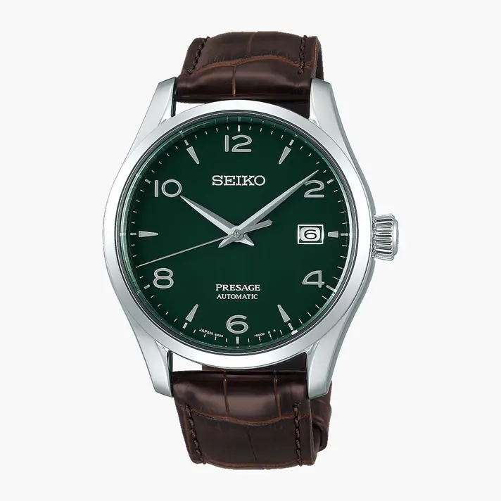 שעון SEIKO מסדרת PRESAGE היוקרתית, במהדורה מוגבלת של 2000 יחידות בכל העולם. לשעון לוח אמייל ירוק , מנגנון אוטומטי המסוגל לשמור אנרגיה עד ל 70 שעות, זכוכית ספיר קריסטל ועמידות למים עד לעומק 100 מטר. לשעון רצועת עור איכותית וקוטרו 40.5 מ"מ.