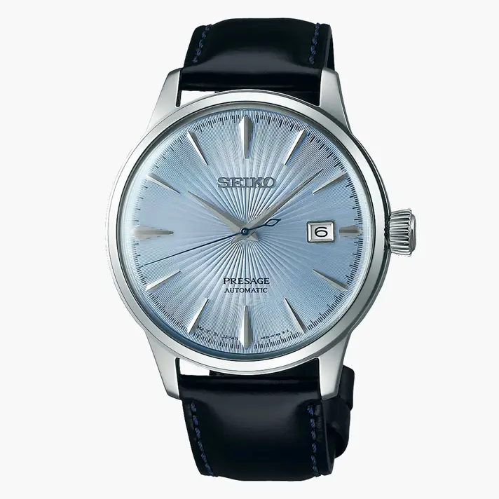 שעון SEIKO מסדרת Presage Cocktail המציגה לוחות יוצאי דופן בעולם השעונים. לשעון מנגנון אוטומטי המסוגל לשמר אנרגיה עד ל 41 שעות. השעון עמיד למים עד ל 50 מטר ויש לו רצועת עור איכותית. קוטר השעון 40.5 מ"מ.