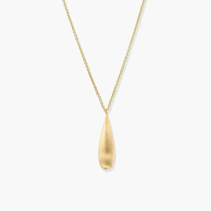 שרשרת זהב 14K עליה תלויה טיפת זהב בגימור משי באורך 4 ס"מ ורוחב 1.3 ס"מ. אורך השרשרת 42 ס"מ + 3 סנטימטר הניתנים להארכה.