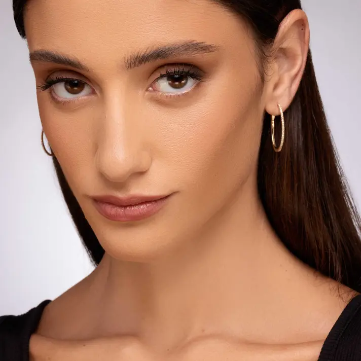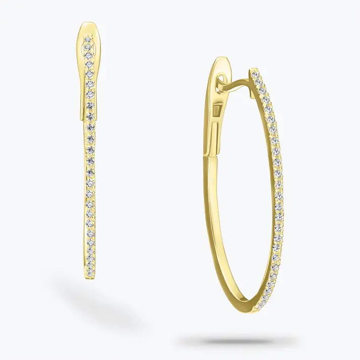 עגילי יהלומים נלי, עשויים זהב צהוב 14K במראה אובאלי ומשובצים 52 יהלומים טבעיים ונוצצים.