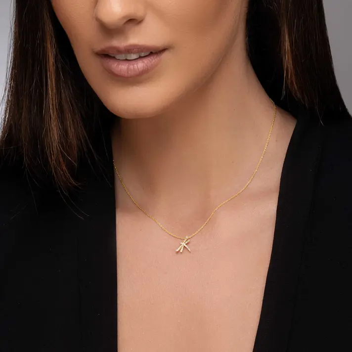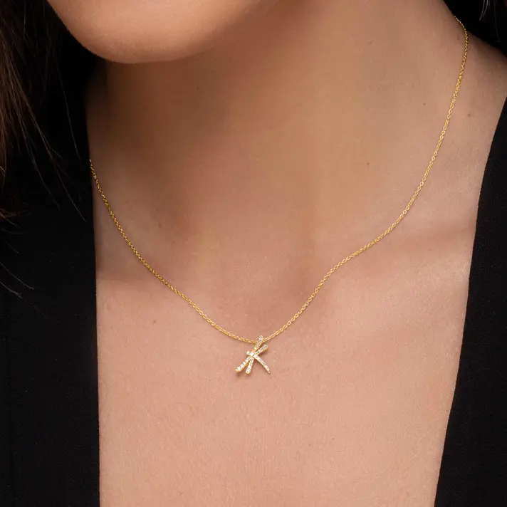 תליון שפירית עשוי זהב צהוב 14K משובץ 22 יהלומים טבעיים ונוצצים.