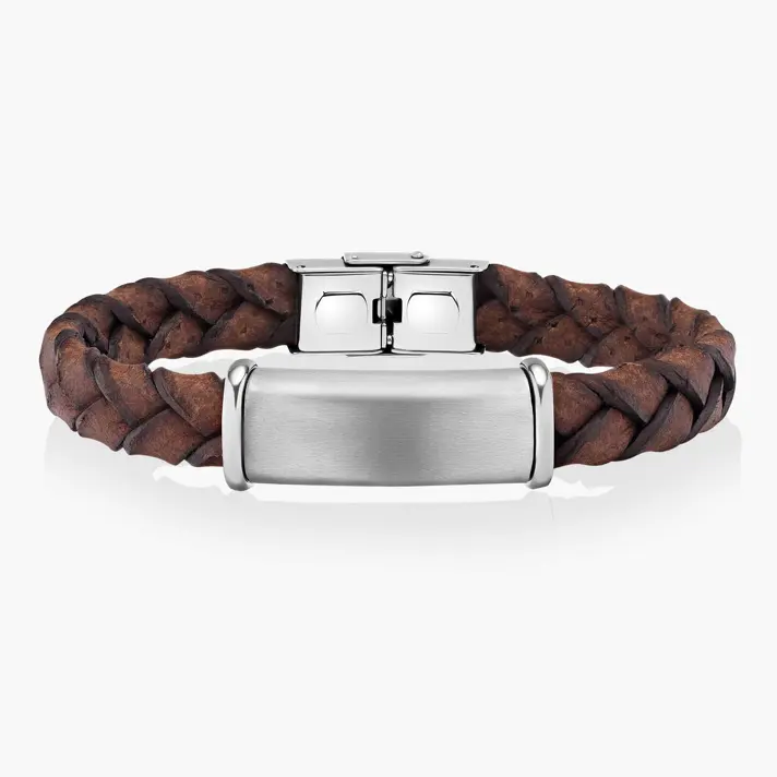 צמיד בן מקולקציית Status. שדרג את הסטייל שלך עם קולקציית הצמידים החדשה לגבר. צמיד בן עשוי עור חום שתי וערב עם סוגר פלדת אל חלד.
