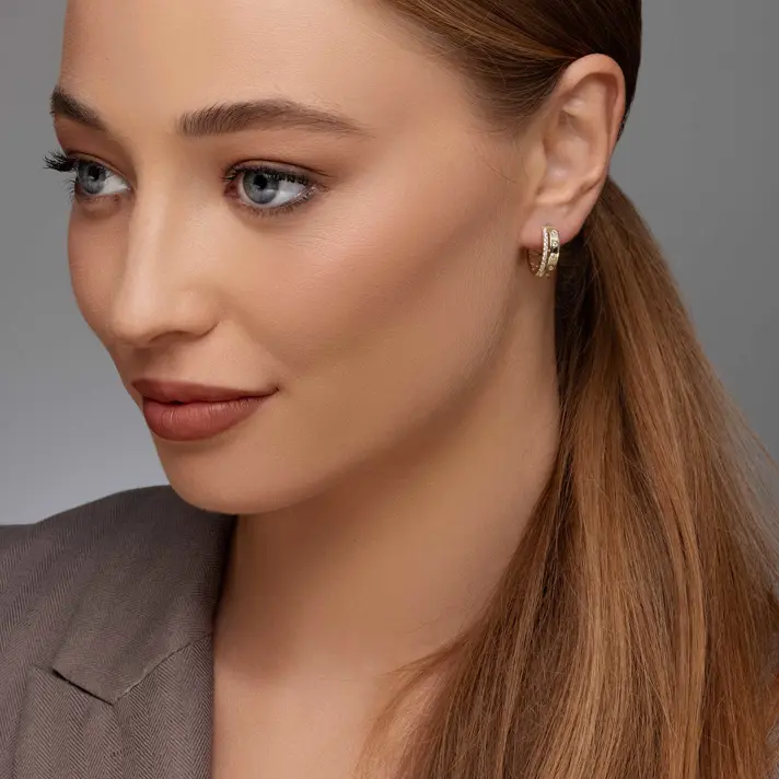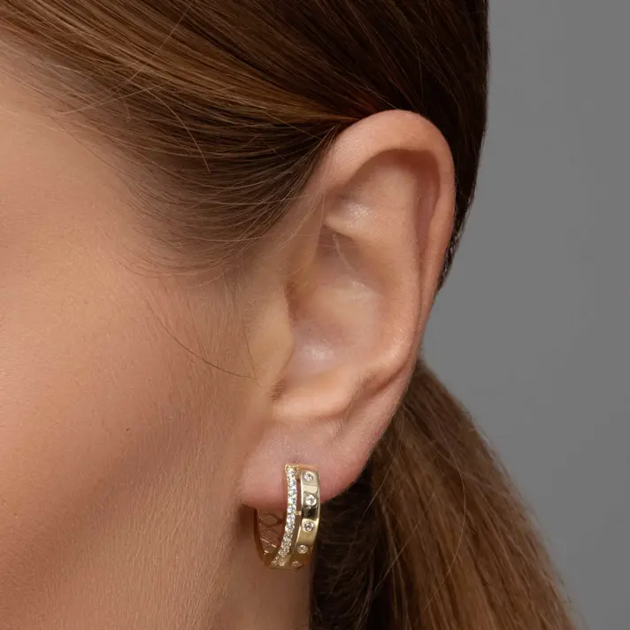 עגילי אנאבל- חישוק זהב משובץ זרקונים