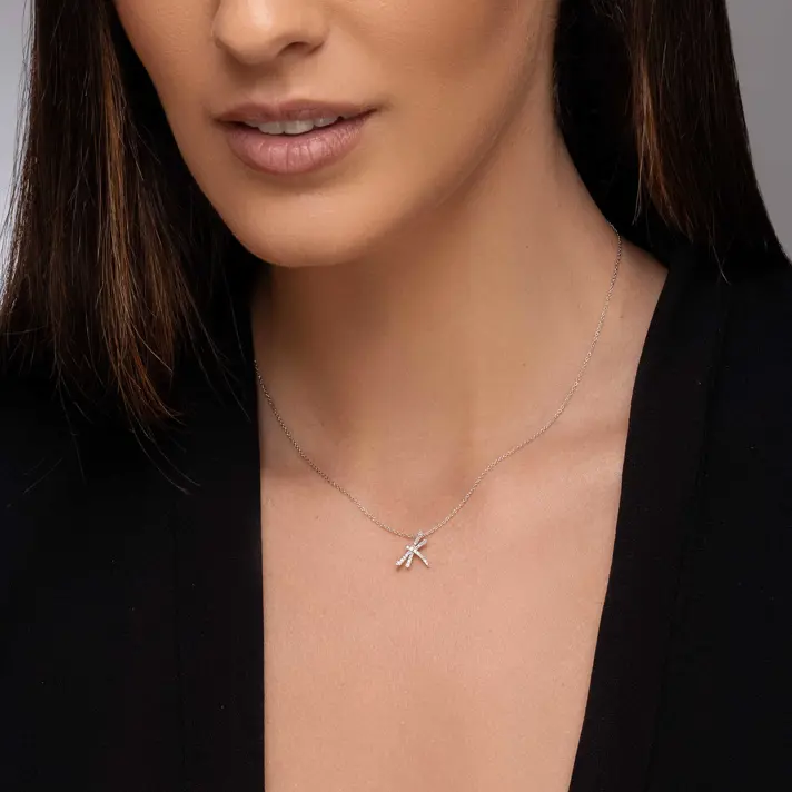 תליון שפירית עשוי זהב לבן 14K משובץ 22 יהלומים טבעיים ונוצצים. אורך התליון ס"מ אחד.