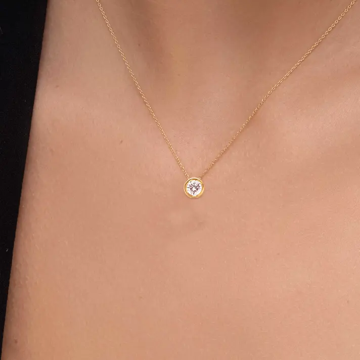 שרשרת ותליון זהב 14K בשיבוץ יהלום מרכזי טבעי, גדול ונוצץ. לפירוט נתוני היהלום יש ללחוץ על נתוני אבני החן.