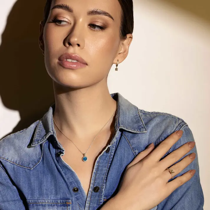 תליון זהב בשיבוץ בלו לונדון ויהלומים