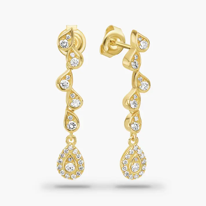 עגילי זהב טיפות תלויות בשיבוץ יהלומים