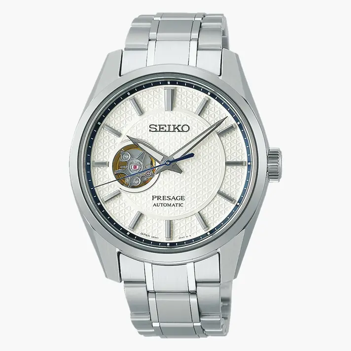 מאז הקמתה רק לפני שנתיים, סדרת Presage Sharp Edged ביססה במהירות מקום בעולם השעונים היוקרתי בזכות היכולת שלה בייצור שעונים מכאניים- מסורתיים בסגנון יפני מודרני מובהק. הסדרה מבליטה את העידון של האסתטיקה היפנית- מסורתית באמצעות עיצובי לוח חזקים וזוויתיים. לוח השעון במראה האופייני לסדרה ובשימוש Shironeri צבע משי לבן טהור, יפני מסורתי. לוח השעון בנוי באופן תלת מממדי על ידי תבנית גאומטרית המשנה את הגוון בהתאם לזווית ולמפגש עם האור - מה שיוצר משחקי צבע, חדות ועומק ייחודיים . לשעון מנגנון אוטומטי 6R38, בעל עתודת כוח של 70 שעות. לוח השעון בעל "לב פתוח"- חלון הצצה המאפשר לראות את פעילות מנגנון השעון. לשעון זכוכית ספיר קריסטל למניעת שריטות עם ציפוי אנטי רפלקטיבי. קוטר השעון 40.2 מ"מ והוא עמיד במים עד לעומק 100 מטר. גוף השעון וצמיד השעון עשויים פלדת אל חלד עם ציפוי קשיח.