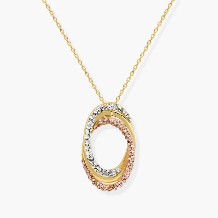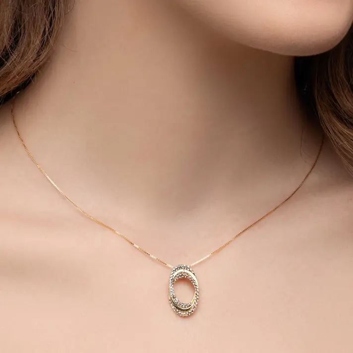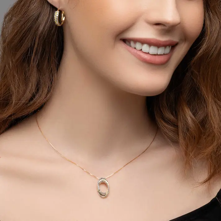 תליון זהב OVAL בשיבוץ זירקונים לבנים וחומים