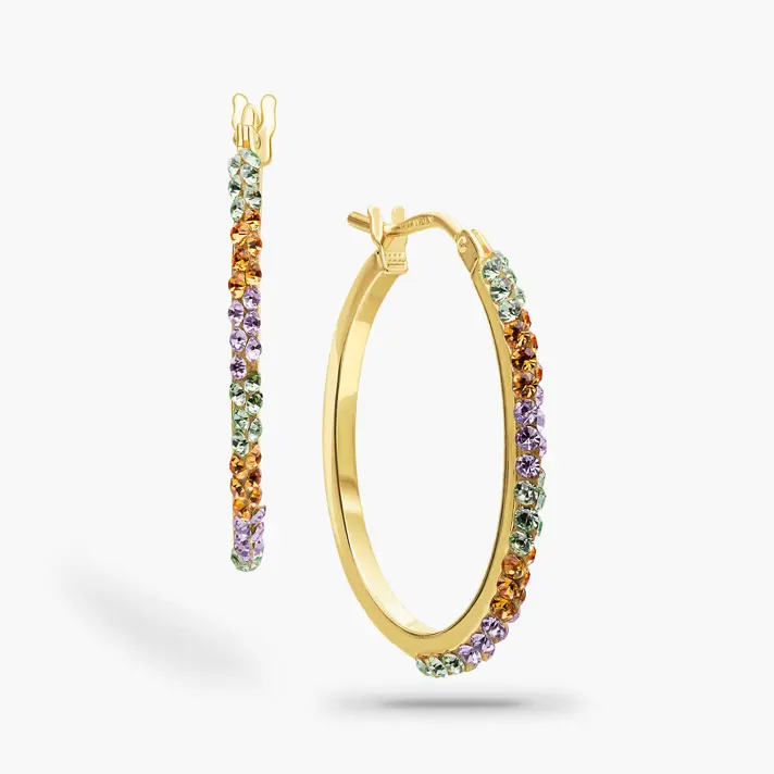 עגילי חישוק מזהב משובצים אבני סברובסקי צבעוניות
