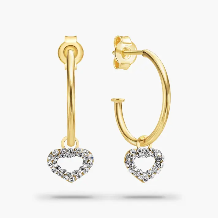 עגילי זהב MY HOOP עם לבבות נוצצים