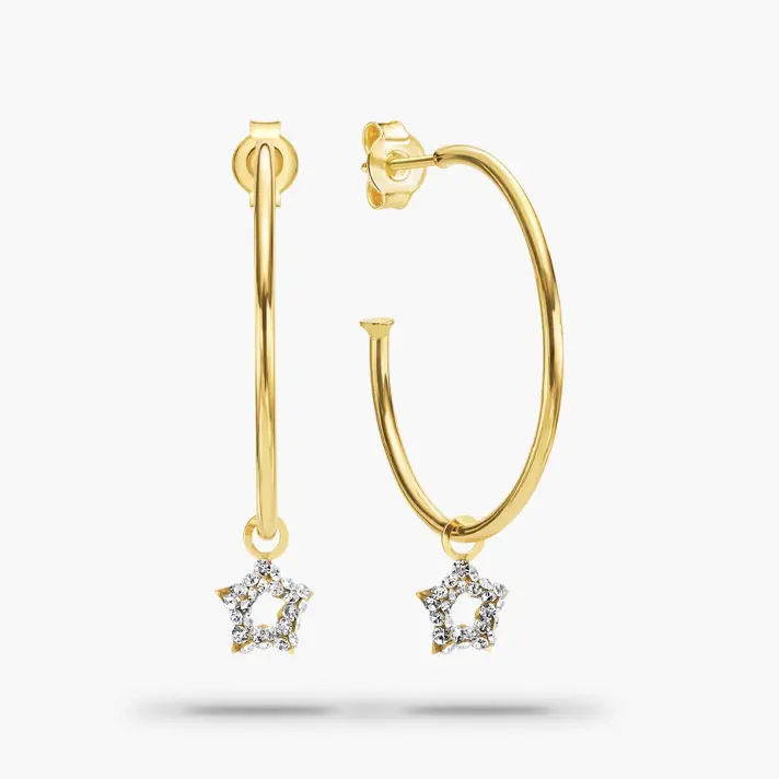 עגילי זהב MY HOOP עם כוכבים נוצצים