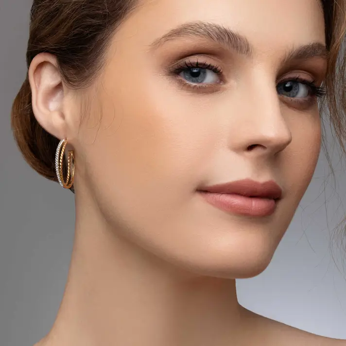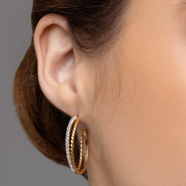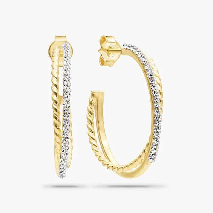 עגילי חישוק זהב משובצים אבני סברובסקי מסדרת COLOR SPARKLE