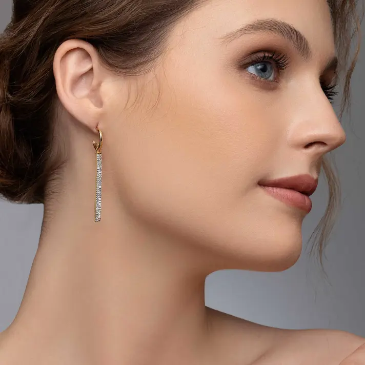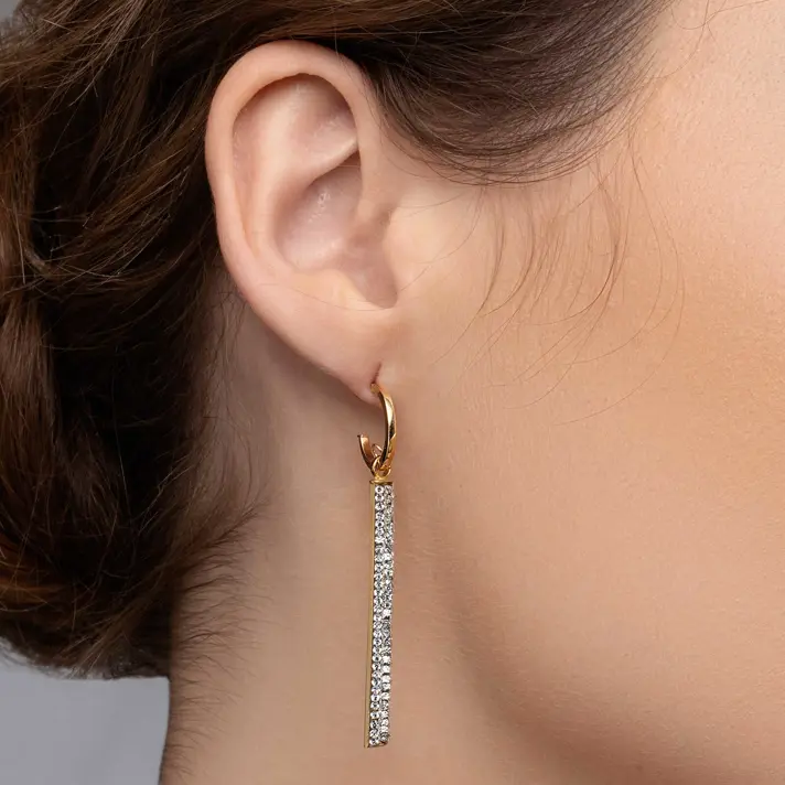 עגילי זהב 14K מסדרת COLOR SPARKLE- המשלבת זהב ואבני סברובסקי נוצצות במיוחד, למראה יומיומי צבעוני ומלא שיק. אורך העגילים 5.3 ס"מ