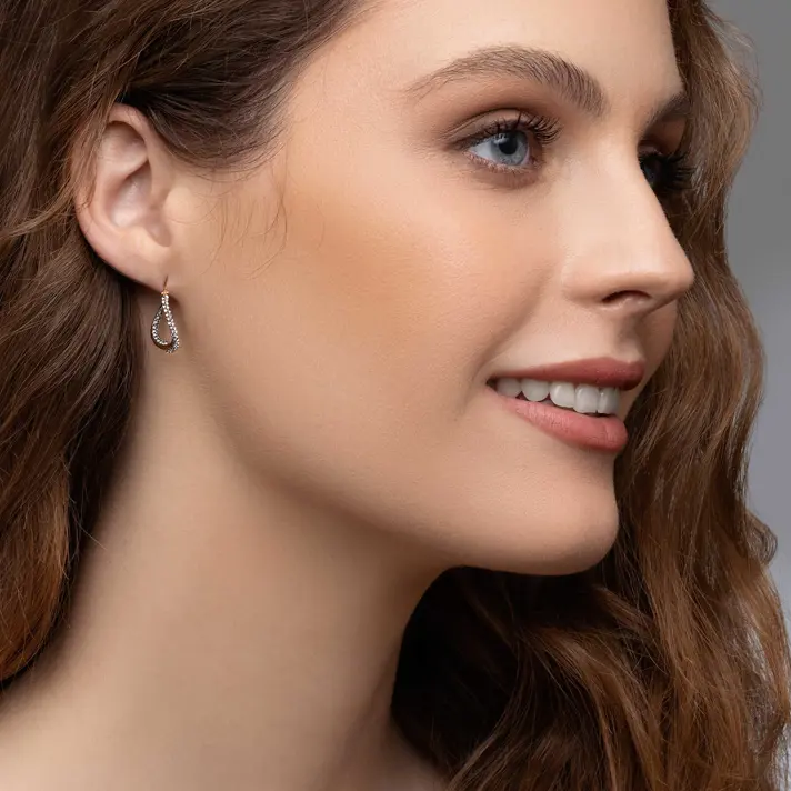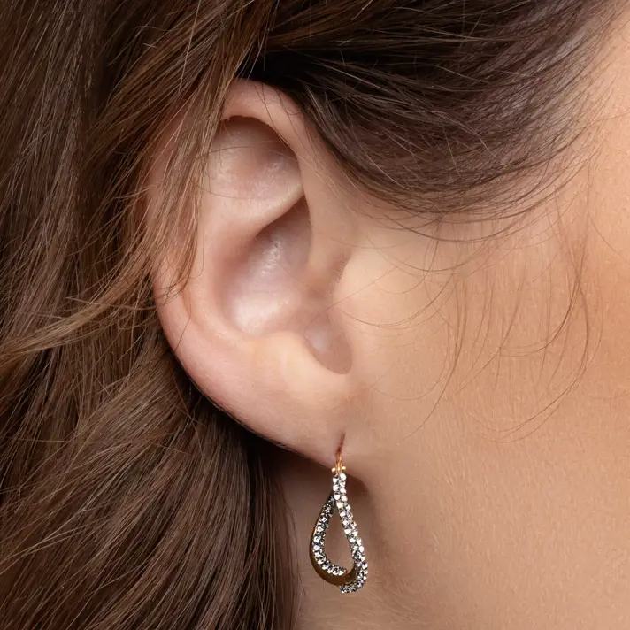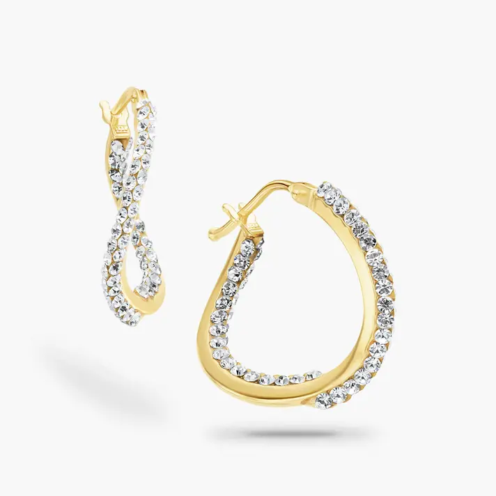 עגילי זהב 14K משובצים באבני סברובסקי. קוטר העגילים 1.8 ס"מ.