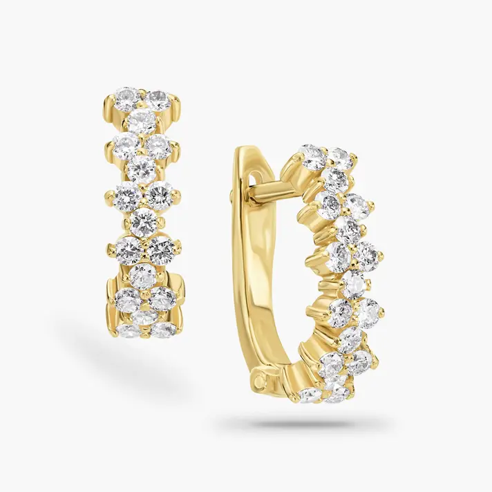 עגילי ברוק, עשויים זהב צהוב 14K ומשובצים ב 34 יהלומים טבעיים ונוצצים. אורך העגילים 1.4 ס"מ.