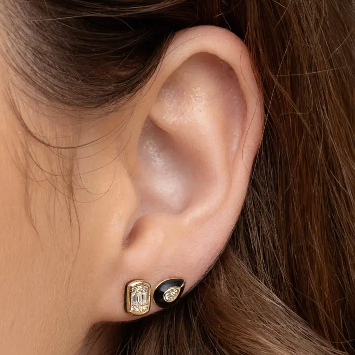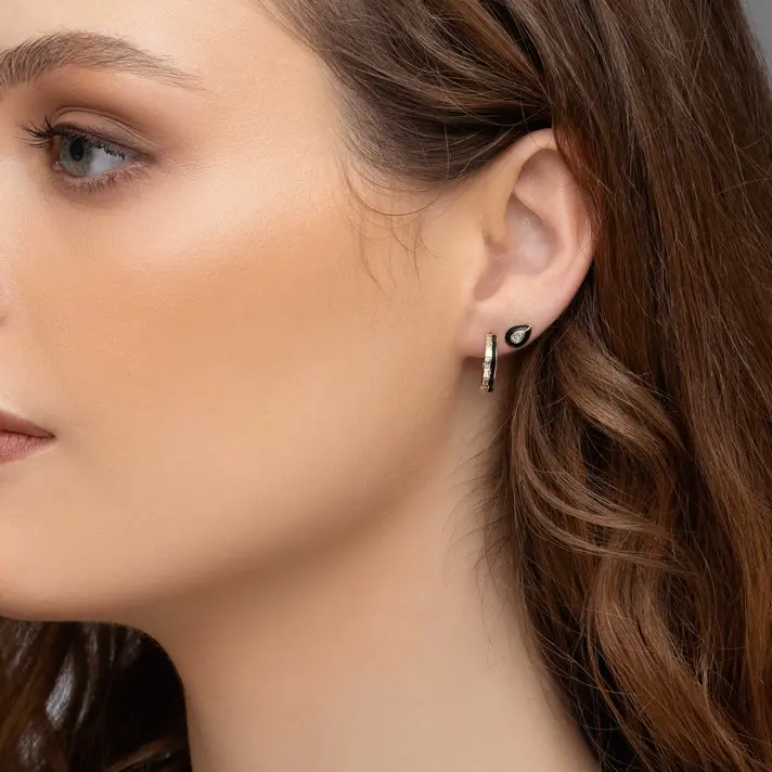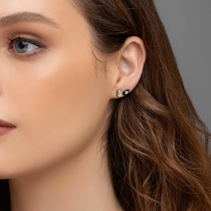 עגילי זהב מסדרת Black series בשיבוץ יהלום עם אמייל שחור
