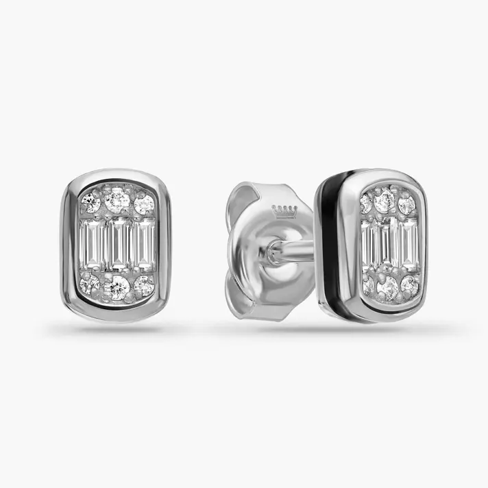 עגילי זהב מסדרת Black series בשיבוץ יהלומי באגט עם אמייל שחור